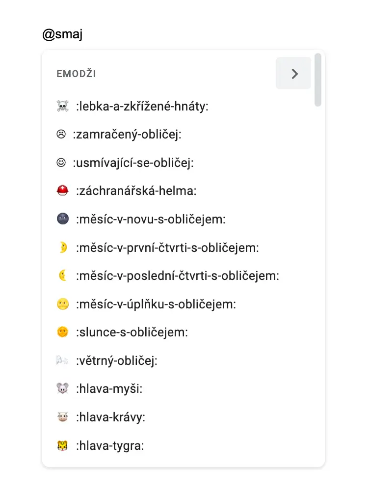 Nejjednodušší cestou je zápis ve formátu @název emoji – například @kočka.