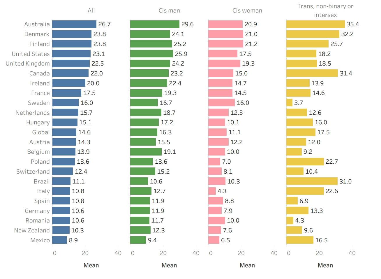 Australané mimochodem v dotazníku uvedli, že v mnoha případech litují svého opilství, konkrétně ve 24 %.